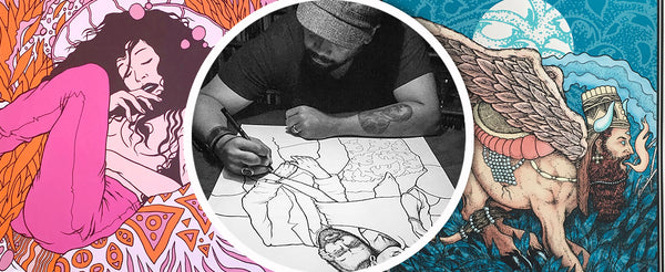 Jermaine Rogers is an artist and designer who first achieved wide notoriety in the field of modern rock art, also known as ‘gigposter’ art, as well as serigraph and silkscreen printmaking. Rogers began his career in Houston, Texas as a member of the 1990s Texas poster-art and street art scene. Since 1995, Rogers has created posters and artwork for a wide variety of musical acts, including Queens Of The Stone Age, David Bowie, Tool, Deftones, Radiohead, Widespread Panic, Nine Inch Nails, Run The Jewels, Foo Fighters, and more. His work is viewed as influential in the modern resurgence of the gigposter art form.