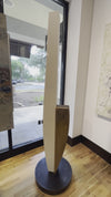 These totems are formed from steel into the waved shapes corresponding to harmonic sound frequencies. These Duet series have two units that relate to one another and mount together into a single unit. Each is one of a kind and can be displayed inside or outside.